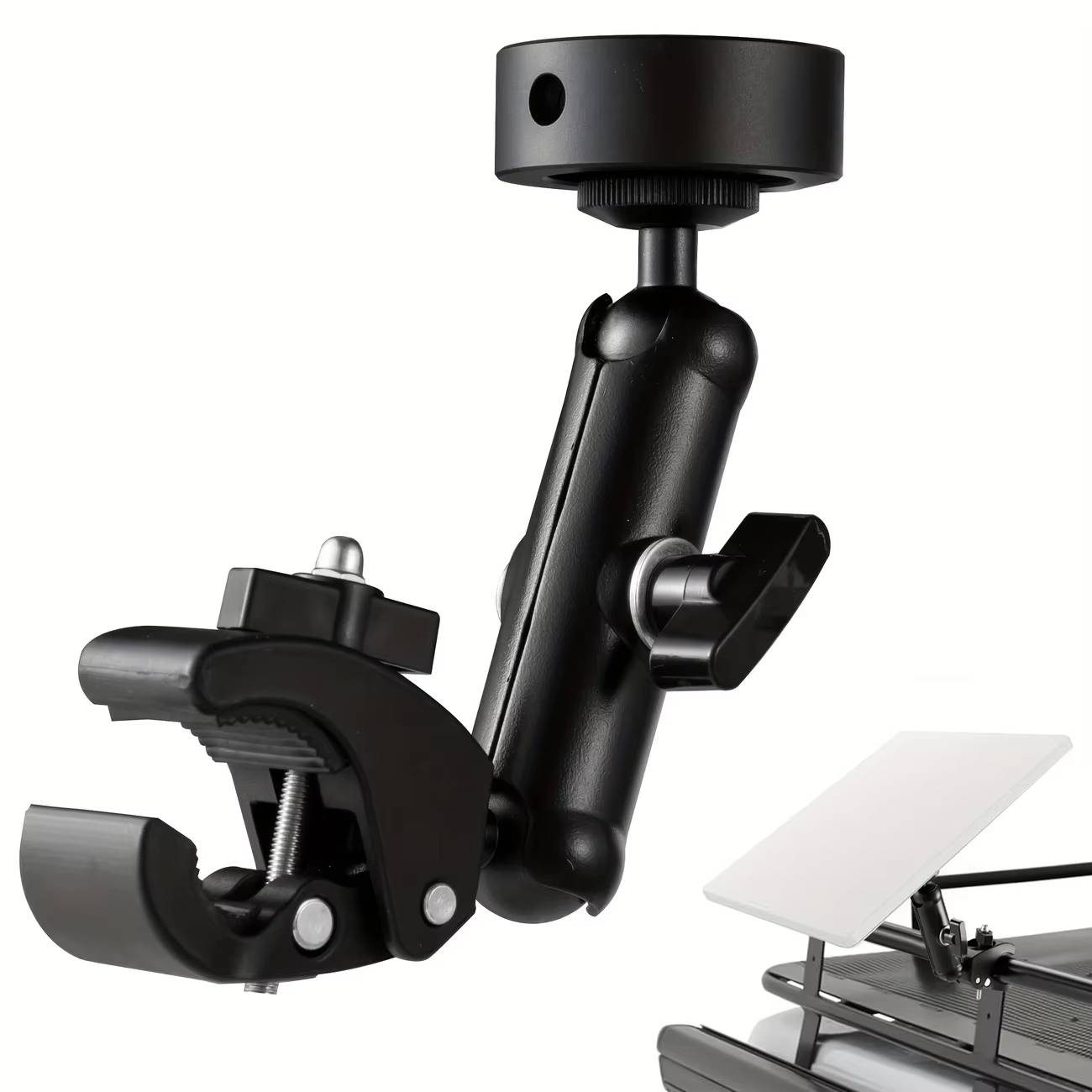 Diferente dos suportes fixos tradicionais, este modelo conta com uma cabeça articulada (Ball Head) de dupla esfera, permitindo ajuste de ângulo em 360 graus.