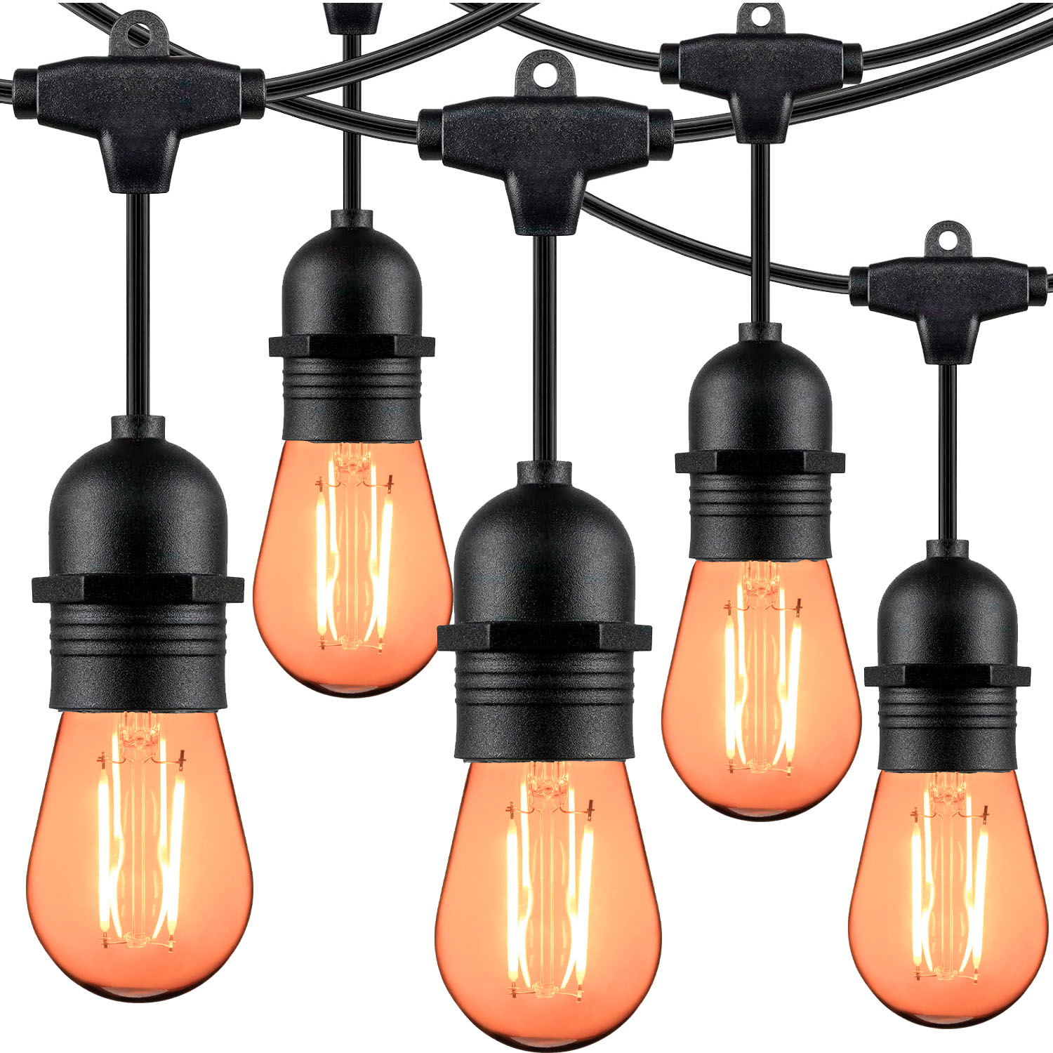 Acompanha 20 lâmpadas de filamento LED de 2W cada, no modelo S14, ideais para áreas externas. As lâmpadas são resistentes à água e a quedas e contam com 15.000 horas de vida útil, com luz âmbar (amarelada). Aproveite este kit promocional e leve para casa seu varal de luzes com lâmpadas inclusas!
